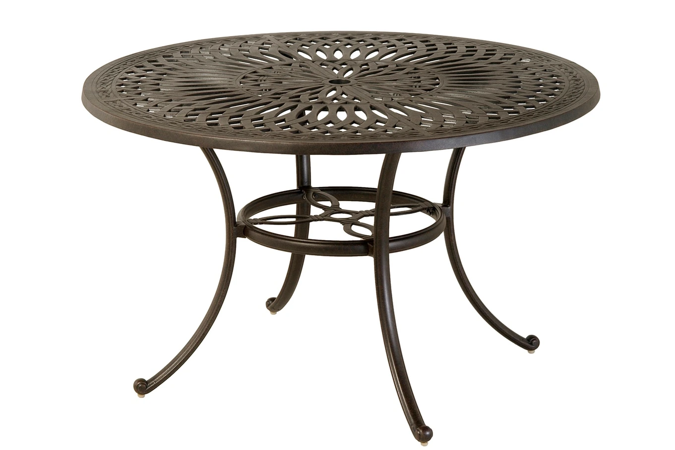 Get ready to dine like patio royalty with the Hanamint Mayfair 48″ Round Dining Table—the Desert Bronze dazzler that’s tougher than a tumbleweed and fancier than a coyote in a cummerbund! Crafted from rust-proof cast aluminum with a powder-coated finish, this table laughs off cracks and fading while seating 4-5 of your favorite folks. Its elegant tabletop vibes with Mayfair chairs or any seating squad, and cleanup’s a breeze with just soap and water. Backed by a 10-year structural and 3-year finish warranty, it’s your backyard’s new VIP!