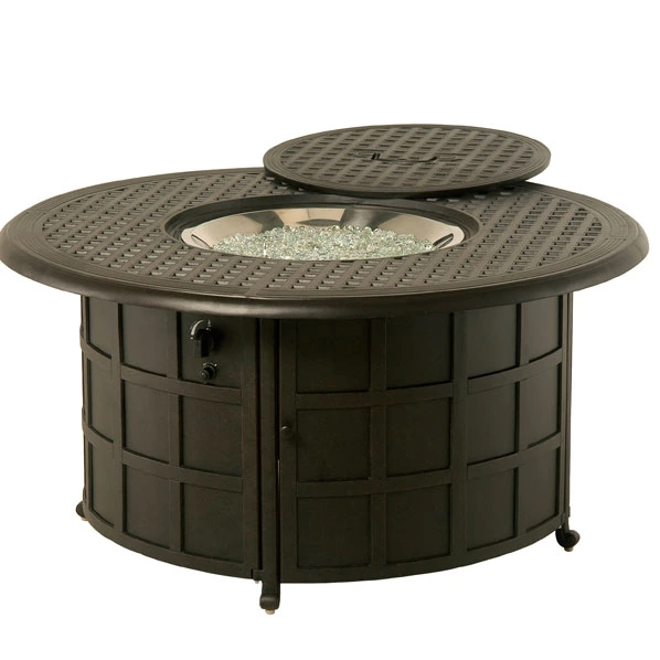 Light up your patio parties with the Hanamint New Classic 48″ Round Firetable—the Desert Bronze dynamo that’s hotter than an Arizona sunset! Built from tough sand-cast aluminum with a rust-proof, multi-step finish, this sleek stunner brings modern flair to your backyard. Its cozy gas fire pit, complete with a match-light burner and safety valve, sparks warm vibes for 8 hours, while the roomy tabletop holds snacks, drinks, or your quirky cactus decor. Roll out the propane cart, add an ice bucket or glass guard for extra pizzazz, and pair with New Classic pieces for a patio glow-up that’s perfect for chilling or thrilling!