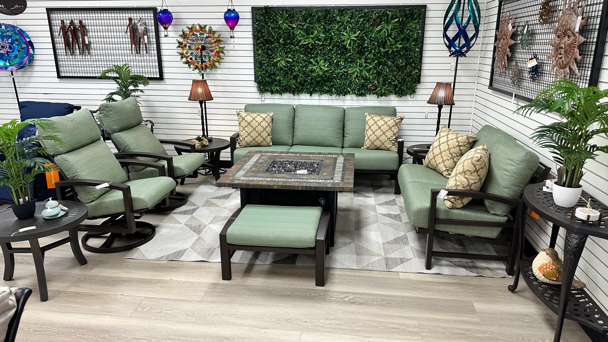 Crafted in the USA to withstand the elements, it comes with a 15-year frame warranty, 5-year finish and fabric warranty, and 1-year cushion warranty.